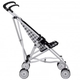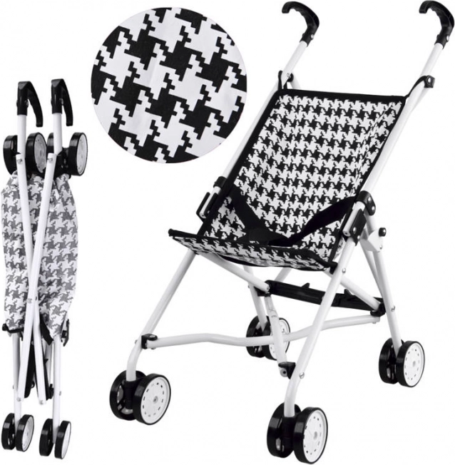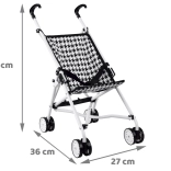 Lahek in stabilen voziček za punčke v elegantnem vzorcu pepito bo razveselil vsakega otroka. Zahvaljujoč kovinski konstrukciji, gladko vozečim dvojnim kolesom in varnostnemu pasu je igra preprosta in varna. Voziček se hitro zloži, je lahek za upravljanje in je kot nalašč za vsakodnevno igro doma in na prostem.