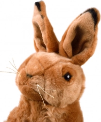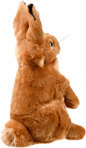 Plišasti zajček je zasnovan v realistični sedeči drži. Z mehko rjavo dlako in podrobnimi ušeski prispeva k avtentičnemu videzu, ki prinese veselje v vsako otroško sobo. Ta zajček je popoln pliškot za otroke, saj nudi občutek topline in udobja.