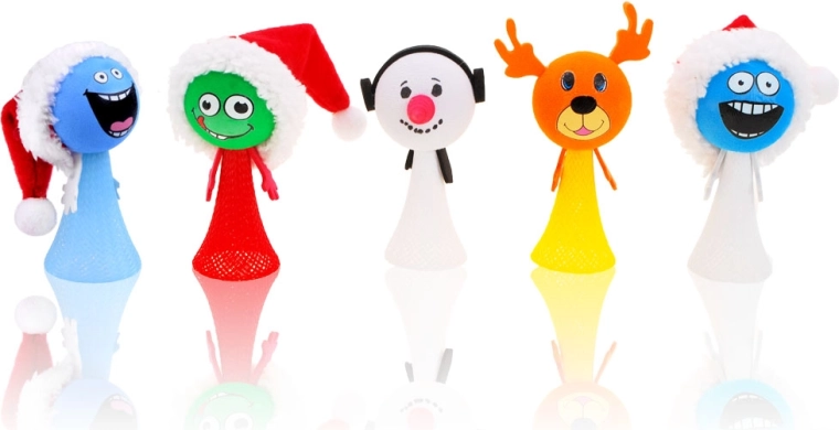 Igra s škratom je čisto veselje – pritisnite škrata s prsti navzdol k tlom in spustite! Bzzzzzum! in izgine :) Vsa zabava je v tem, da je ta neverjetni skakalec zelo prožen in nasmejan. Pojavlja se in izginja! Zimski škrati v preoblekah Božička, severnega jelena in snežaka bodo vašemu otroku prinesli veliko veselja. Lahko ga uporabite tudi za badminton. Idej za igro je veliko, a da jih uresničite, potrebujete SKAKLJIVEGA ZIMSKEGA ŠKRATA.