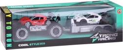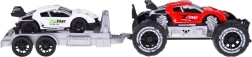 Set vsebuje terensko vozilo, športni avtomobil s prikolico – popolna rešitev za različne igralne scenarije.