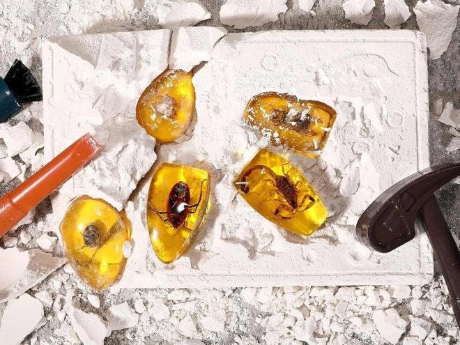 Izkopavanje jantarnih žuželčjih fosilov – izobraževalni arheološki komplet
