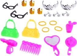 Ta univerzalni komplet oblačil in dodatkov je zasnovan za punčke tipa BARBIE, ANLILY in druge punčke višine približno 30 cm. Zahvaljujoč pisanim vzorcem oblek, številnim čevljem in stilskim dodatkom otroci zlahka ustvarjajo nove modne kombinacije ter razvijajo domišljijo in fino motoriko.