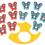 Igralci izmenično zlagajo figurice eno na drugo. Kdor prvi odloži vse svoje miške, zmaga. Napeta zabava za vso družino.