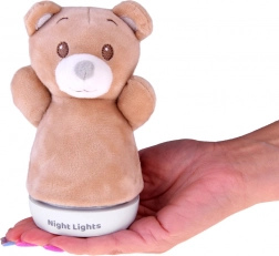 Ta nočna lučka v obliki medvedka je idealna za otroke, ki zvečer potrebujejo nežno svetlobo in občutek bližine. Prijeten na dotik, mehak površinski material skupaj s pomirjujočim svetlobnim učinkom zagotavlja udobje pri uspavanju in nočnih prebujanjih.