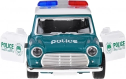 Miniaturno policijsko vozilo s klasičnim dizajnom ponuja realistične podrobnosti, vključno z rdečimi in modrimi svetlobnimi utripalkami ter izrazitim policijskim potiskom. Kovinska karoserija in gumijasta kolesa povečujeta vzdržljivost in oprijem, zato je avtomobilček idealen za vsakodnevno igro doma in na poti.