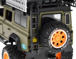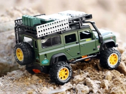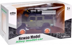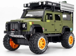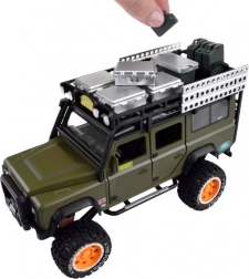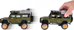 Odkrijte kvalitetno izdelan kovinski terenec za vsakega malega raziskovalca. Vozilo je v elegantni zeleni barvi s skrbno izdelanimi detajli, kot so strešni prtljažnik s kanistrarjem in škatlami.