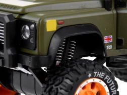 Kovinsko ohišje v zeleni barvi je dopolnjeno z gumijastimi tekalnimi kolesi in realističnimi svetlobnimi učinki.