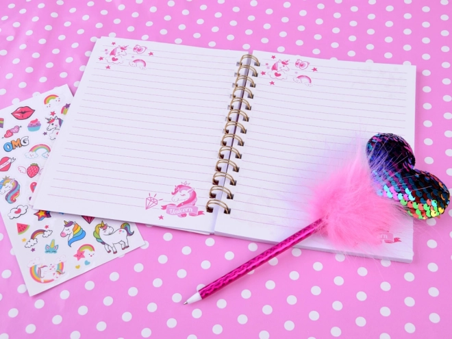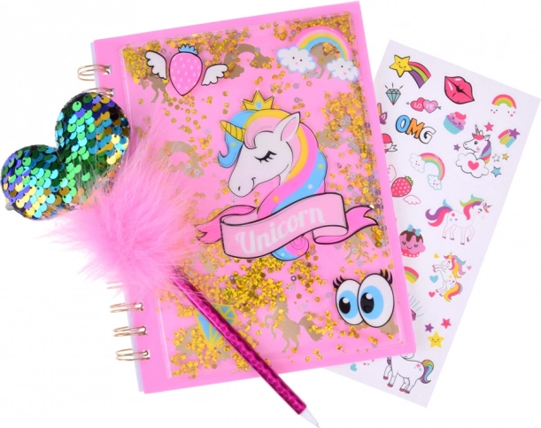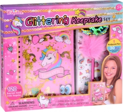 Ta čarobni dnevnik z motivom enoroga ponuja idealen prostor za zapisovanje vaših misli, skrivnosti in idej. S sijajnim ovitkom, posutim s svetlečimi delci, dodaja dnevniku edinstven in privlačen videz. Privlačen set prav tako vključuje roza pisalo s puhastim pomponom in svetlečim srcem, skupaj z barvnimi nalepkami za kreativno okrasitev.