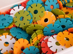 Konstrukcijska igrača vsebuje 506 delov v 6 različnih barvah: bela, rumena, oranžna, rdeča, zelena, modra. Kocke so shranjene v plastični škatli s pokrovom, ki ima ročaj za enostavno prenašanje. Po končani igri lahko otrok preprosto pospravi igračo.