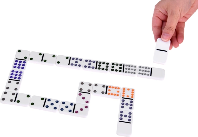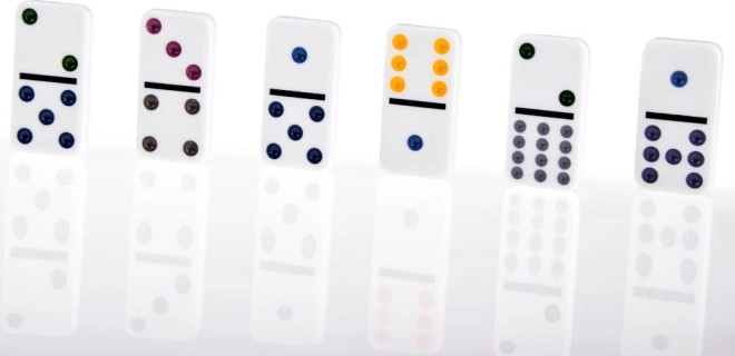 - Dimenzije domine: 5,1 cm × 2,6 cm × 0,7 cm
