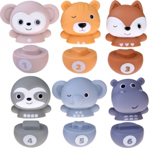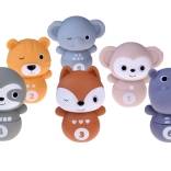 Izbirajte med šestimi različnimi živalskimi figuricami: opica, slon, povodni konj, tiger, lenivec in veverica.