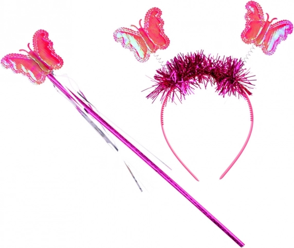 Barvita metuljeva krila, naglavni trak in paličica dopolnijo popoln vilinski videz za karneval ali igro doma.
