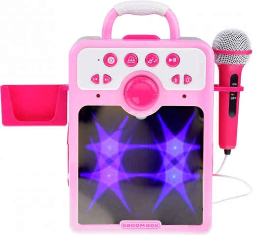 Rožnat otroški boombox je popolna zabava za vsakega malega ljubitelja glasbe in karaok. Ta odličen glasbeni zvočnik ponuja mnogo funkcij in je opremljen z zrcalnim sprednjim panelom z barvitimi svetlobnimi efekti.