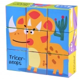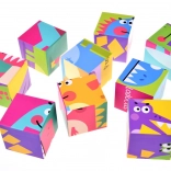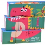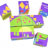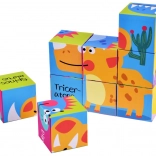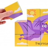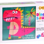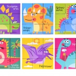 Devet kock omogoča sestavljanje šestih različnih slik dinozavrov s pomočjo pisanih ilustracij za lažje učenje.