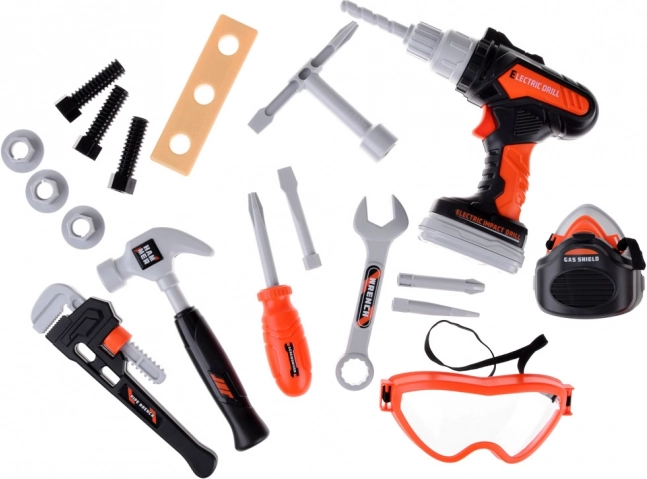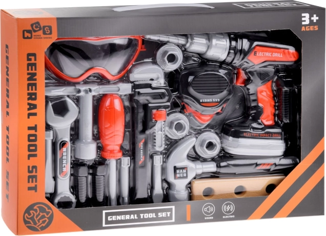 - Popolna oprema: Set vsebuje sveder, kladivo, ključe in zaščitna očala, kar omogoča raznolike vrste popravljalnih iger.