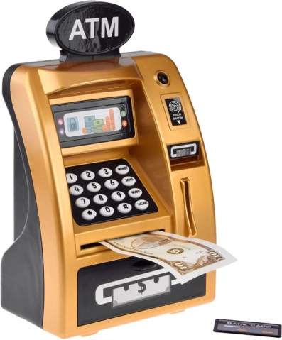 Ta model otrokom ponuja možnost varčevanja in dvigov ter simulacije resničnih bančnih transakcij.