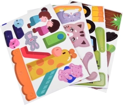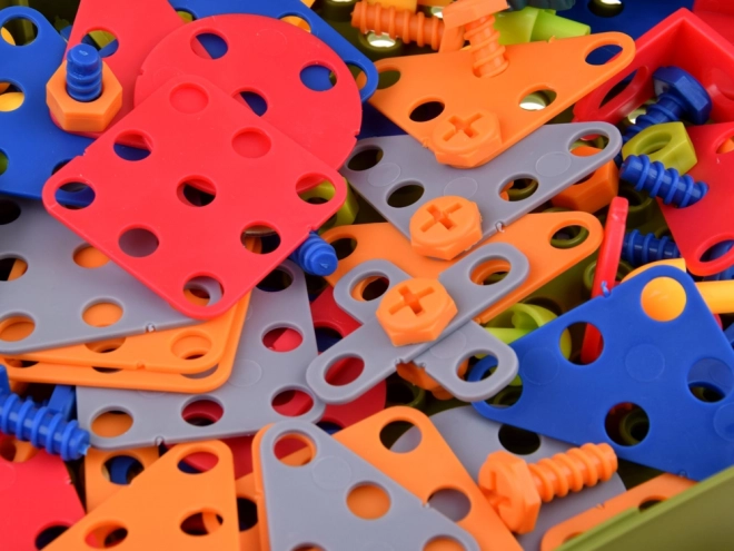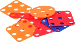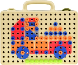 Perforirana plošča v kovčku služi kot osnova za gradnjo mozaikov in modelov. Otroci lahko ustvarjajo po lastni domišljiji ali s pomočjo priloženih predlog. Sestavljanka je idealna za samostojno in skupno igro, ki razvija ustvarjalnost in potrpežljivost.