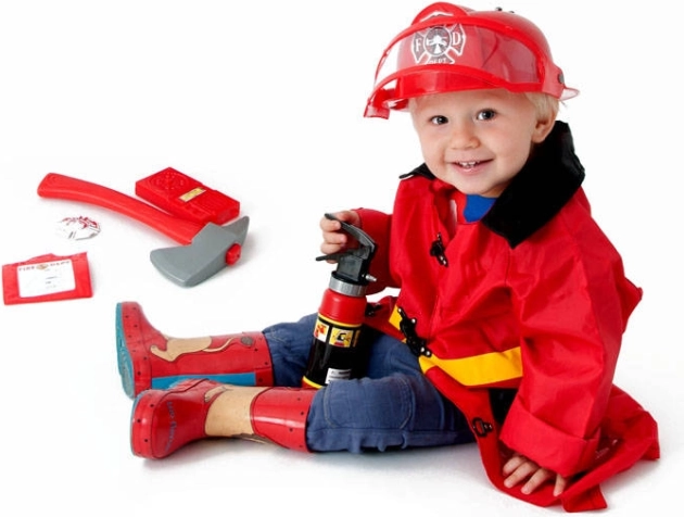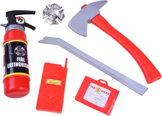 Sekira, lomilka, radijska postaja, značka in gasilska izkaznica – mali reševalec ima vse, kar potrebuje za realistično igro.