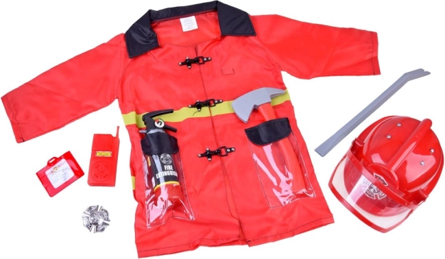 Uresničite otroške sanje postati pogumni gasilec! Ta realističen otroški gasilski kostum vsebuje rdeč jopič, čelado s prozornim vizirjem in bogat komplet dodatkov: sekiro, lomilko, radijsko postajo, značko, izkaznico ter gasilni aparat – vodni razpršilec. Odličen za pustne zabave, karneval in igro vlog.