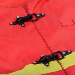 - Realistična izvedba – rdeč jopič s kontrastnimi črtami in kovinskimi zaponkami.