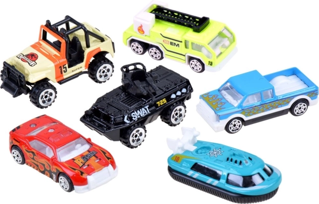 Ta pester komplet prinaša mešanico vozil – od dirkalnikov do specialnih strojev – idealno za ustvarjalno igro, dirke in tematske misije. Kovinske karoserije zagotavljajo vzdržljivost, medtem ko plastični premični deli dodajo avtomobilčkom realističnost.