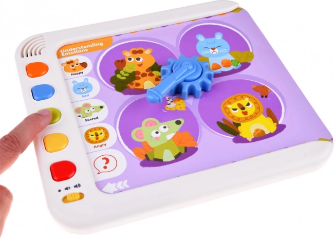 Tabla uči otroke prepoznavati osnovna čustva s pomočjo jasnih slik in glasovnega vodenja. Vrtljiv kazalnik in izbira pravilnega čustva podpirata socialno-čustveni razvoj.