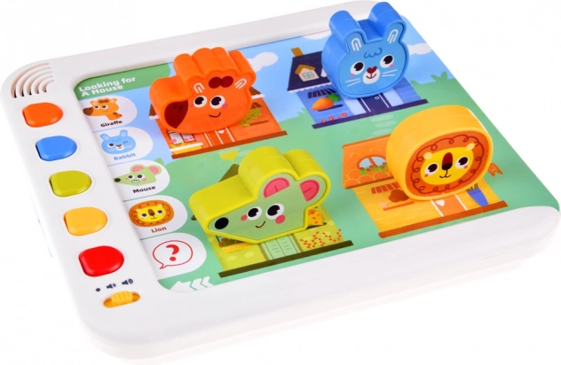 Odkrijte zabaven in izobraževalen svet z interaktivno tablo, navdihnjeno z Montessori pristopom. Otroci se igrajo in hkrati učijo: vadijo štetje z metuljem, spoznavajo like in barve, prirejajo živali k njihovim domovom ter spoznavajo osnovna čustva (happy, sad, scared, angry). Vodnik v angleščini daje navodila in ocenjuje naloge, zato otrok takoj izve, ali je odgovoril pravilno.
