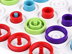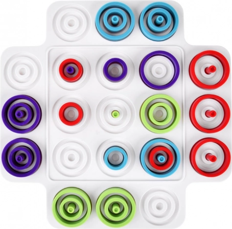 Barvni obročki in zatiči podpirajo koordinacijo oko–roka, prostorsko predstavljivost in zbranost – idealno za otroke in odrasle.