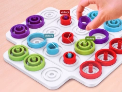 Trap je sodobna različica klasičnega križci-krožci z obročki, ki dodaja nove strateške možnosti. Cilj je ustvariti niz treh elementov iste barve – zmagate pa lahko tudi z naraščajočimi ali padajočimi velikostmi oziroma s so-koncentričnimi merami. Zato je vsako kolo dinamično, hitro in pametno.
