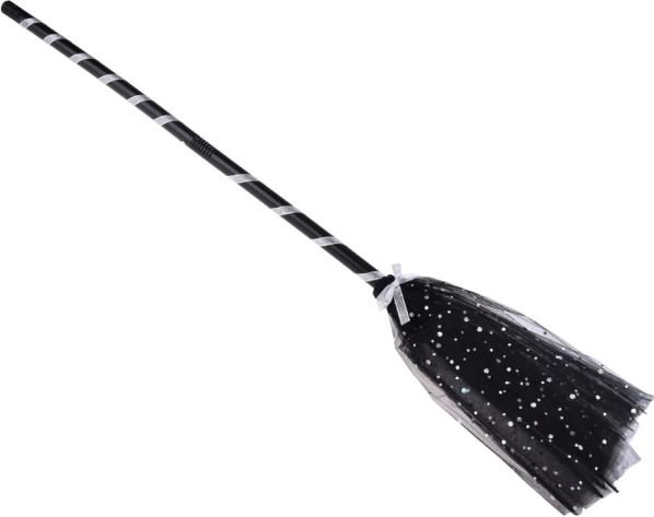- Špičast črn klobuk, puhnasto krilo na elastiko, zložljiva metla
