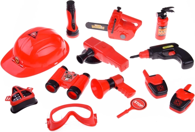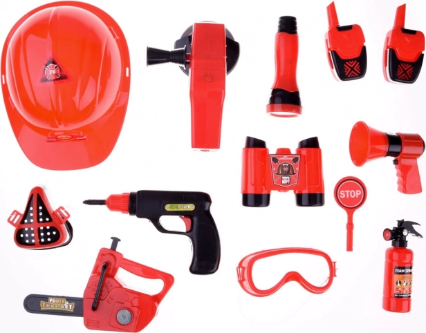 Del seta je vse, kar potrebujete za igro gasilcev: čelada, daljnogled, megafon, maska in druga varnostna oprema.