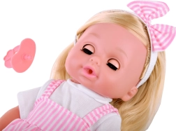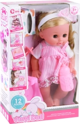 Lutka zna govoriti, se smejati in jokati, kar omogoča otrokom, da se poglobijo v realistično igro nege dojenčka.