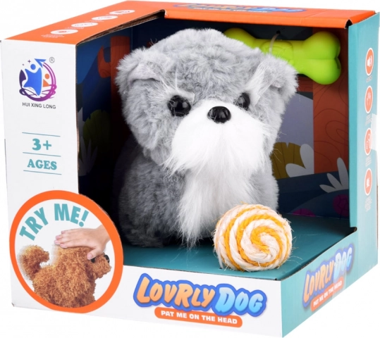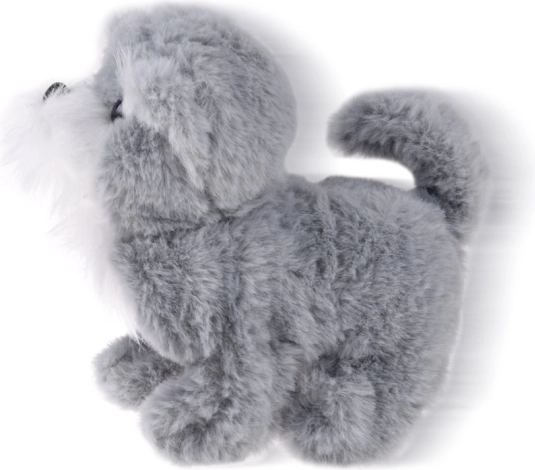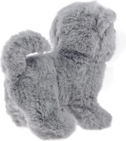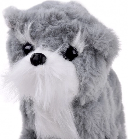 Svetle in sijoče oči, realističen smrček ter mehak siv pliš naredijo kužka odličnega spremljevalca tako za igro kot tudi kot dekoracijo.