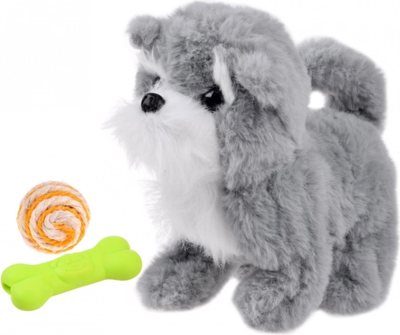 Interaktivni sivi kužek je odlična igrača za otroke, ki si želijo nekaj več kot le običajno plišasto igračo. Ta kužek ne le da laja in piska, temveč tudi hodi naprej in nazaj, premika glavo, odpre in zapre gobček ter maha z repom. Kužek poleg tega prihaja z igrivimi dodatki — mehko gumijasto kostjo in barvno žogico.• Interakcija in gibanje• Veliko zabave in različnih aktivnosti• Spodbuja otroško ustvarjalnost in domišljijo