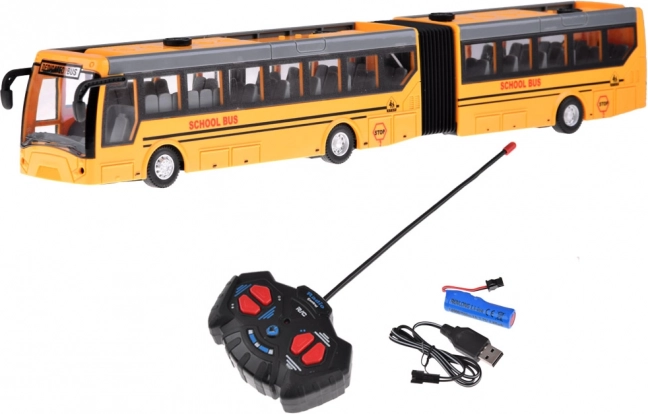 Zabavni šolski avtobus na daljinsko upravljanje je model s preklopnim telesom dolžine 36,5 cm, ki ponuja veliko zabave za vse navdušence nad velikimi vozili. Izdelan iz plastike, ta realistično oblikovan avtobus sveti z LED osvetlitvijo med vožnjo.