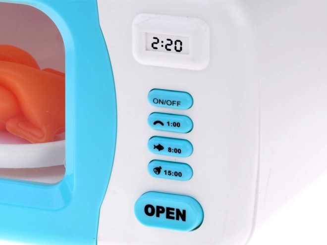Zabavna igra pomaga otrokom razvijati fine motorične sposobnosti in zavedanje o gospodinjskih dejavnostih. Mikrovalovna pečica je narejena iz plastike v belo-modri barvni kombinaciji in je realistična replika kuhinjskega aparata.