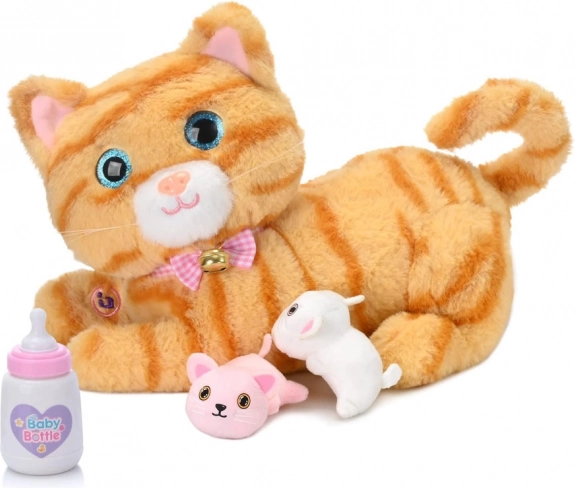 Mehka oranžna mačja mamica z velikimi modrimi očmi in snemljivo pentljo z zlatim zvončkom bo razveselila vse male ljubitelje živali. Zaradi bogatih interaktivnih funkcij spodbuja razvoj domišljije, skrbnost in ob božanju nudi nežno pomirjujoče predenje.