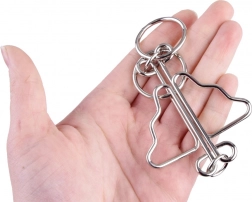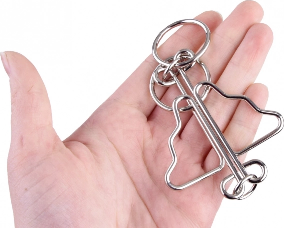 Komplet kovinskih ugank je odlična izbira za ljubitelje logičnih izzivov. Zahvaljujoč čvrsti žičnati zasnovi prenesejo pogosto uporabo in ponujajo dolgotrajno zabavo. Vsak kos preizkusi vašo potrpežljivost, prostorsko predstavo in fino motoriko – potreben je le pravi prijem in rešitev je na dosegu.