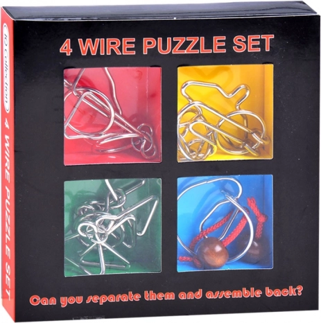 Komplet vsebuje več vrst žičnatih ugank z različno konstrukcijo – od krogov in obročev do tematskih oblik. Vsak kos je nov izziv.