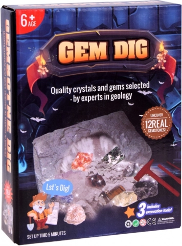 Ta ustvarjalni komplet otrokom prinaša vznemirjenje odkrivanja, podobno kot pri pravih arheoloških izkopavanjih. V mavčnem bloku so skriti pisani kamni, ki jih mali raziskovalci postopoma razkrijejo s pomočjo varnih orodij. Odlična izbira za domačo zabavo in učenje.