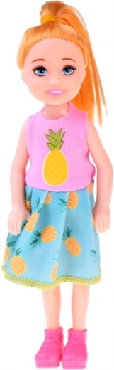 Punčka ima gibljive ude, zato bodo otroci uživali v več možnostih poziranja. Barvite oblekice z veselimi vzorci in usklajeni čeveljčki spodbujajo ustvarjalnost in kombiniranje oprav. Idealno kot majhno darilo, za hiško za punčke ali kot dodatek zbirki.