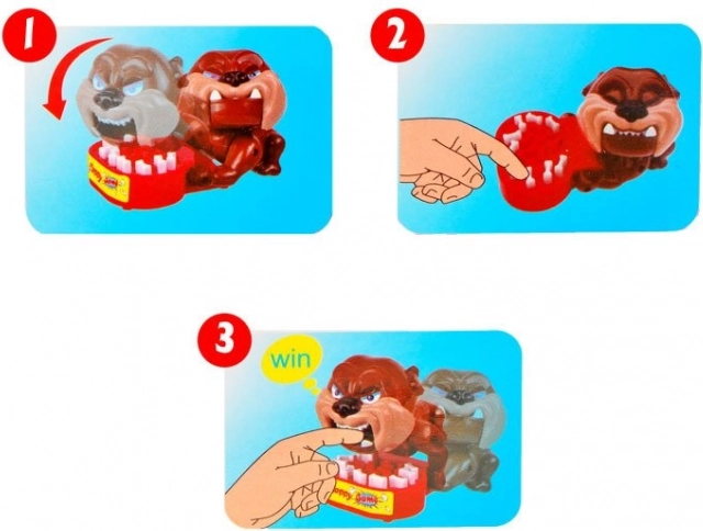 Ta privlačna igra z grizečim psom prinaša preprosta pravila in veliko smeha. Igralci postopoma pritiskajo zobe ali „kosti“ v skledi – eden izmed njih je past. Ko jo aktivirate, pes bliskovito zapre gobec. Zmaga tisti, ki ohrani mirno roko in najhitrejši refleks.