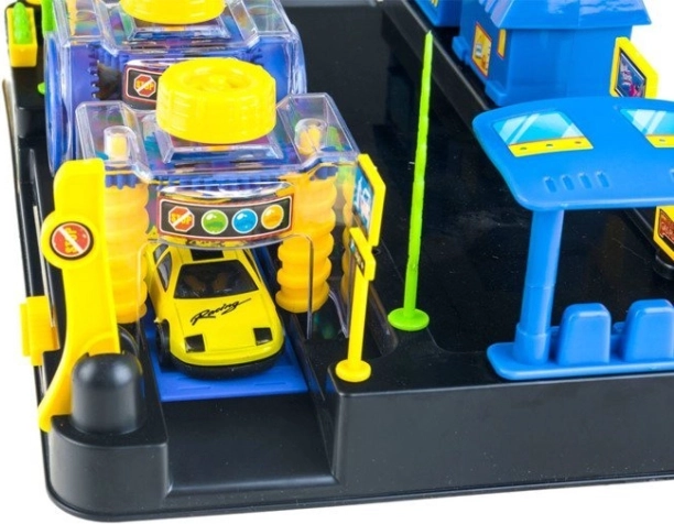 Ta barvit igralni komplet spremeni otroško sobo v živahno avtopralnico z bencinsko črpalko. Otroci lahko avtomobile operejo, natočijo gorivo in jih preverijo v diagnostičnem kotičku – vse v enem kompaktnem setu, ki spodbuja fino motoriko, domišljijo in igro vlog.