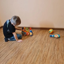 Vsak kegelj ima izrazito številko in vzorec. Otroci med igro vadijo štetje, barve in fino motoriko.