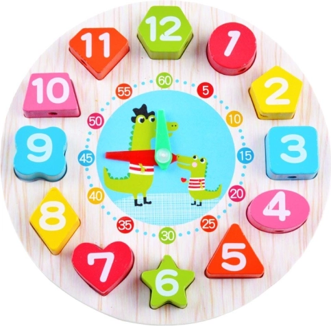 Odkrijte pametno izobraževalno igračo, ki združuje urjenje določanja časa s spoznavanjem števil, barv in oblik. Trpežna lesena izvedba in igrivi živalski motivi takoj pritegnejo otroke, medtem ko vstavljivi koščki in premikajoči se kazalci podpirajo koordinacijo oko–roka in logično razmišljanje.