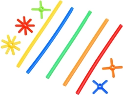 Odkrijte neskončne možnosti ustvarjanja. Prožne plastične slamice v živahnih barvah preprosto povežete z večsmernimi spojkami in v hipu ustvarite kupole, hišice, mostove ali abstraktne 3D objekte. Set je odličen za domačo igro in za šolske tehnične projekte.