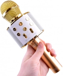 Uživajte v karaoke petju brez kablov. Mikrofon z vgrajenim zvočnikom deluje kot kompaktno ozvočenje in zahvaljujoč Bluetoothu telefon povežete v hipu. Nadzorni gumbi na ohišju mikrofona omogočajo preskakovanje skladb, ustavitev predvajanja, prilagoditev glasnosti mikrofona, glasnosti podlage in odmeva.