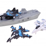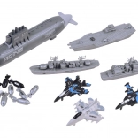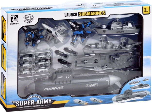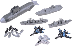 Ta celovit komplet vojaške tehnike otrokom približa svet pomorskih operacij in letalske podpore. S kombinacijo podmornice, ladij in lovcev lahko ustvarjajo lastne scenarije, načrtujejo strategije in razvijajo domišljijo. Realistične oblike, umirjene barve in potiski poudarijo vzdušje pomorske bitke.