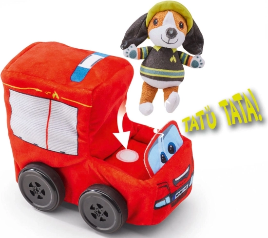 Gasilno vozilo je opremljeno tudi z zvočnimi učinki. Ob pritisku plišastega psa slišite zvoke motorja in sirene. Daljinsko upravljanje omogoča aktivacijo troblje. Plišastega psa je mogoče odpeti, kar otrokom omogoča ustvarjanje različnih zgodb.