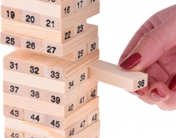 Lesena stolpna igra je zabavna in napeta igra za celo družino. Igra se z 54 lesenimi bloki, ki se zložijo v stolp. Igralci izmenično vlečejo posamezne bloke in jih polagajo na vrh, ne da bi stolp padel. Poleg tradicionalnega načina igre, lahko uporabite tudi 4 lesene kocke za izboljšanje igralne izkušnje.